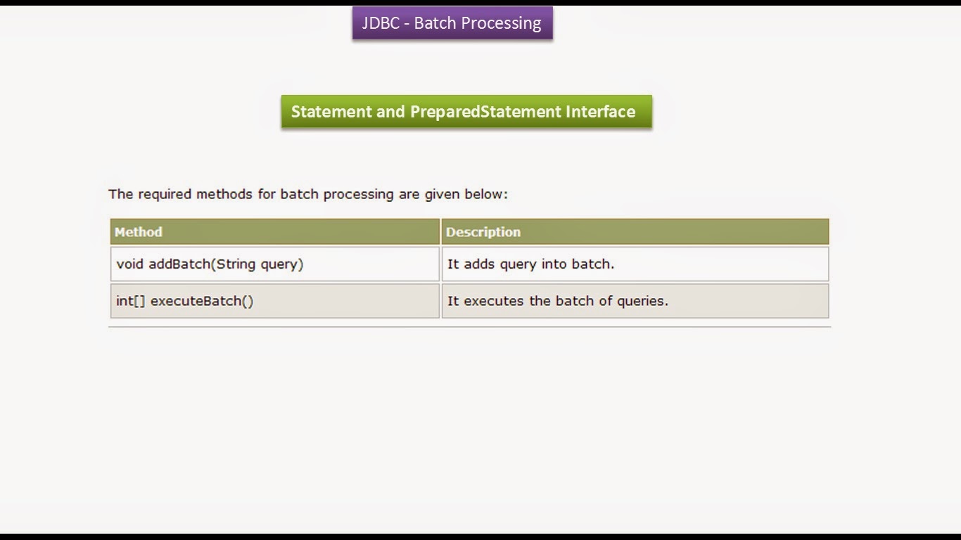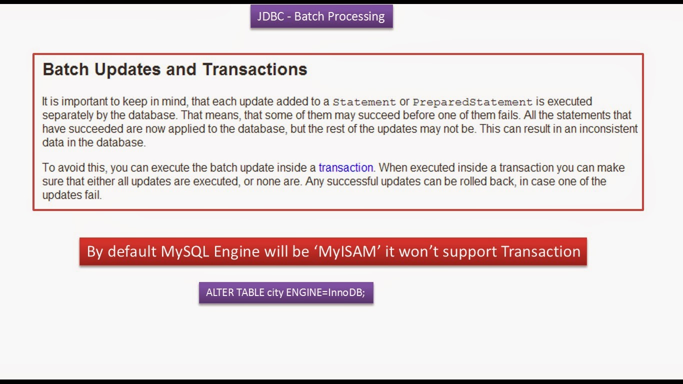JDBC Batch Processing - Introduction 0 replies on 1 page. |