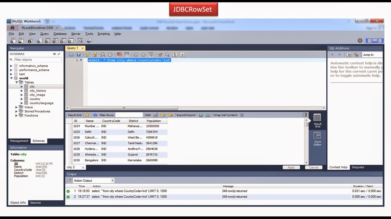 jdbcRowSetDemo.getCityInformation(cityCountrycode);
