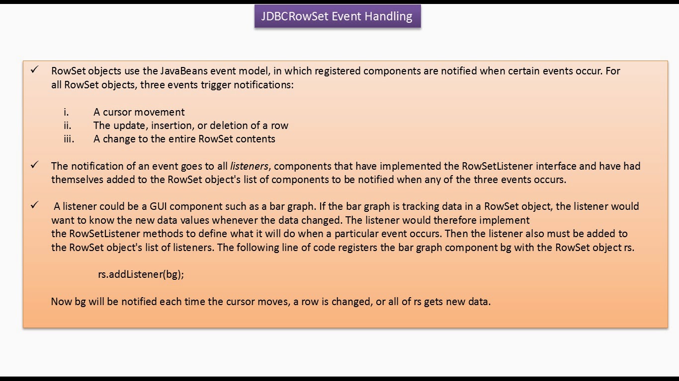 JDBC : JDBCRowSet Event Handling 0 replies on 1 page. |