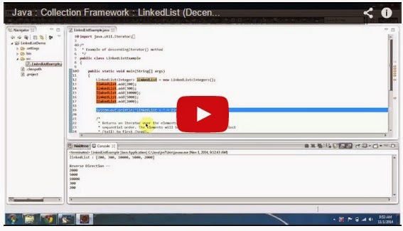 Click here to watch in Youtube : https://www.youtube.com/watch?v=5CZmDPKzr4MLinkedListExample.java import java.util.Iterator;