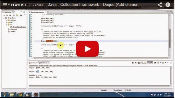 Click here to watch in Youtube :https://www.youtube.com/watch?v=w6aNKzJflaY&list=UUhwKlOVR041tngjerWxVccwDequeExample.javaimport java.util.Deque;