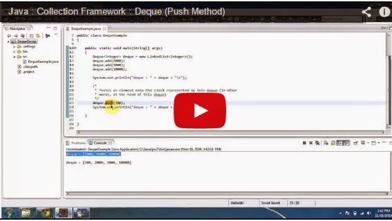 Click here to watch in Youtube : https://www.youtube.com/watch?v=7T1dBx-i98M&list=UUhwKlOVR041tngjerWxVccwDequeExample.java import java.util.Deque;