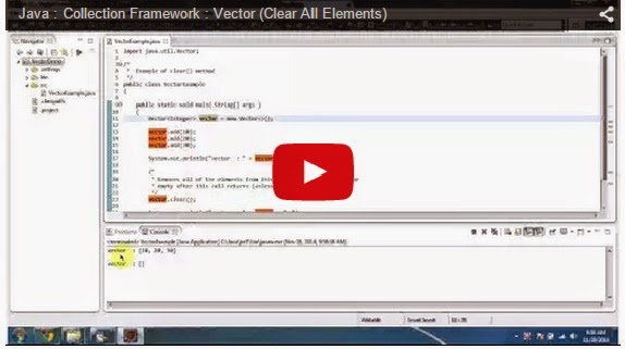 Click here to watch in Youtube :https://www.youtube.com/watch?v=-NX0nusT5WU&list=UUhwKlOVR041tngjerWxVccwVectorExample.javaimport java.util.Vector;