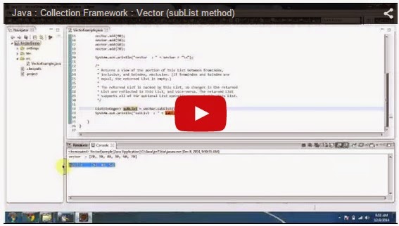 Click here to watch in Youtube : https://www.youtube.com/watch?v=1oAlM_iM738&list=UUhwKlOVR041tngjerWxVccwVectorExample.java import java.util.List;