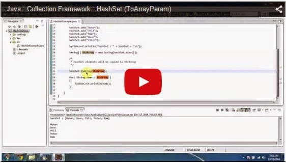 Click here to watch in Youtube :https://www.youtube.com/watch?v=k-wOSvnOc_g&list=UUhwKlOVR041tngjerWxVccwHashSetExample.java import java.util.HashSet;