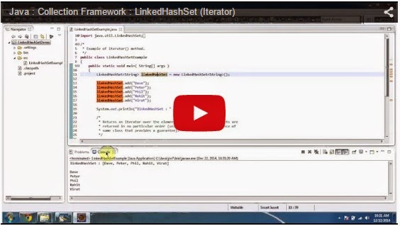 Click here to watch in Youtube :https://www.youtube.com/watch?v=OMao0YxxTwg&list=UUhwKlOVR041tngjerWxVccwLinkedHashSetExample.java import java.util.LinkedHashSet;