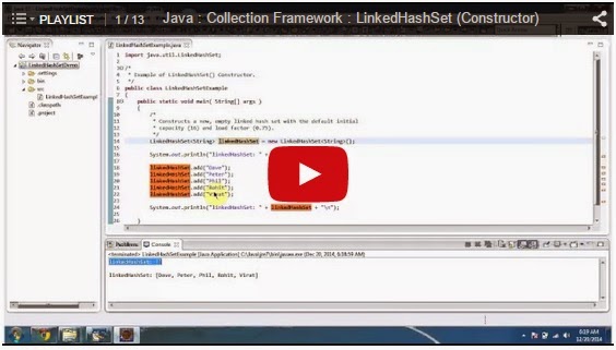 Java : Collection : LinkedHashSet Sample Programs or Examples - Playlist 0 replies on 1 page. |