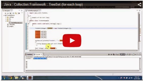 Click here to watch in Youtube :https://www.youtube.com/watch?v=-v_a7jbiFyk&list=UUhwKlOVR041tngjerWxVccwTreeSetExample.java import java.util.TreeSet;