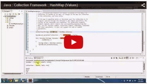 Click here to watch in Youtube : https://www.youtube.com/watch?v=pDkFdcAab7c&list=UUhwKlOVR041tngjerWxVccwHashMapExample.java import java.util.Collection;