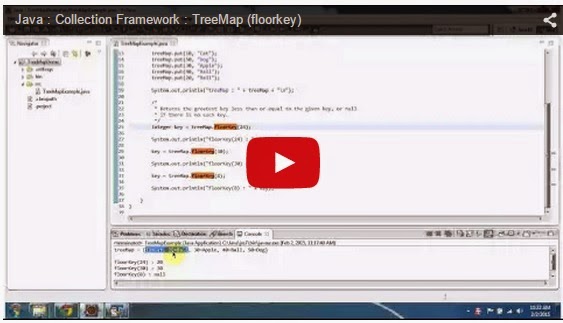 Click here to watch in Youtube : https://www.youtube.com/watch?v=GiABvFQZnCc&list=UUhwKlOVR041tngjerWxVccwTreeMapExample.java import java.util.TreeMap;