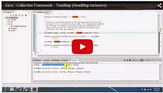 Click here to watch in Youtube : https://www.youtube.com/watch?v=Raxit9-FluA&list=UUhwKlOVR041tngjerWxVccwTreeMapExample.java import java.util.SortedMap;