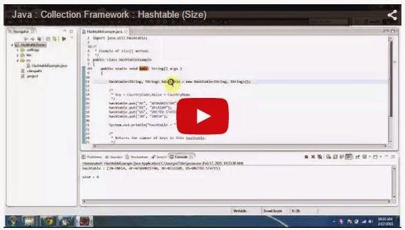 Click here to watch in Youtube : https://www.youtube.com/watch?v=pGX9MS1SB8A&list=UUhwKlOVR041tngjerWxVccwHashtableExample.java import java.util.Hashtable;