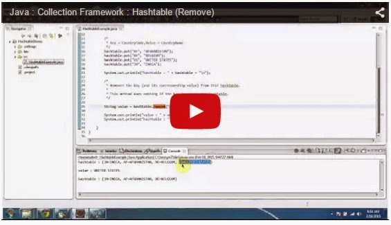 Click here to watch in Youtube : https://www.youtube.com/watch?v=sdy1xgAmCcU&list=UUhwKlOVR041tngjerWxVccwHashtableExample.java import java.util.Hashtable;