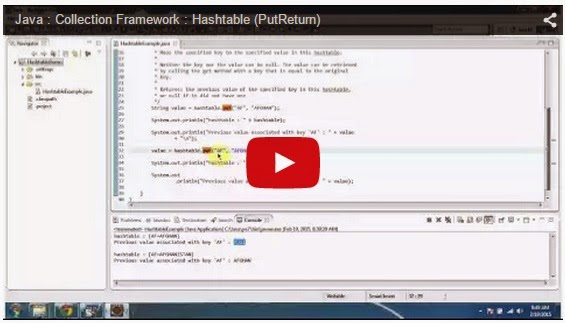 Click here to watch in Youtube : https://www.youtube.com/watch?v=peq4Hp5Z0e8&list=UUhwKlOVR041tngjerWxVccwHashtableExample.java import java.util.Hashtable;