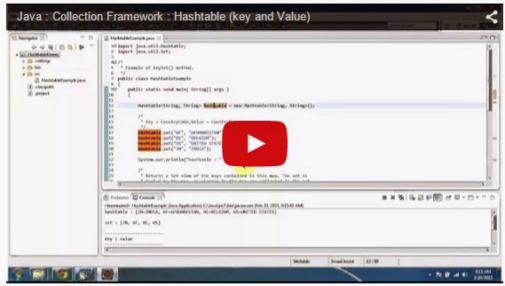 Click here to watch in Youtube : https://www.youtube.com/watch?v=sxX14RWUUPU&list=UUhwKlOVR041tngjerWxVccwHashtableExample.java import java.util.Hashtable;