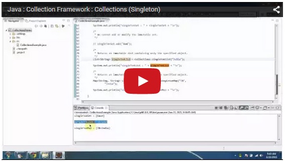 Click here to watch in Youtube : https://www.youtube.com/watch?v=mQb06E5GWbk&list=UUhwKlOVR041tngjerWxVccwCollectionsExample.java import java.util.Collections;