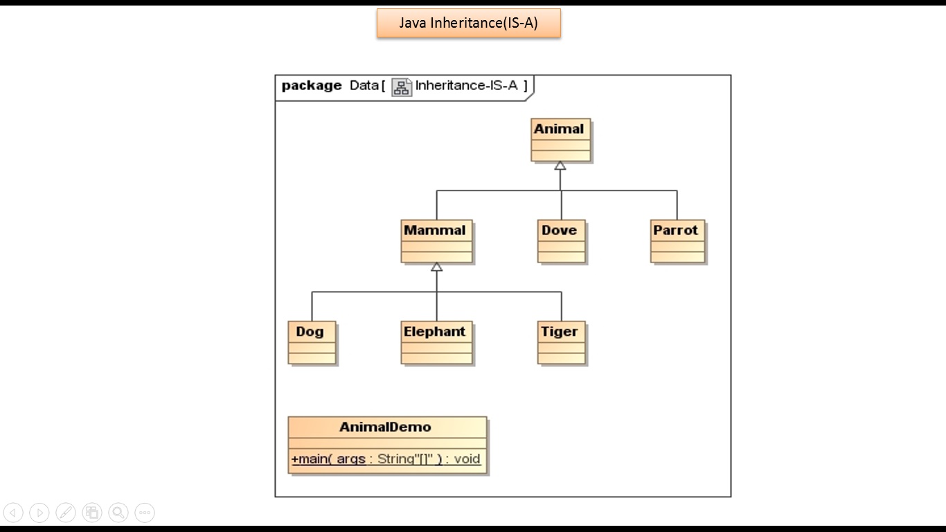 * Animal is the Super class of Mammal,Parrot and Dove classes
