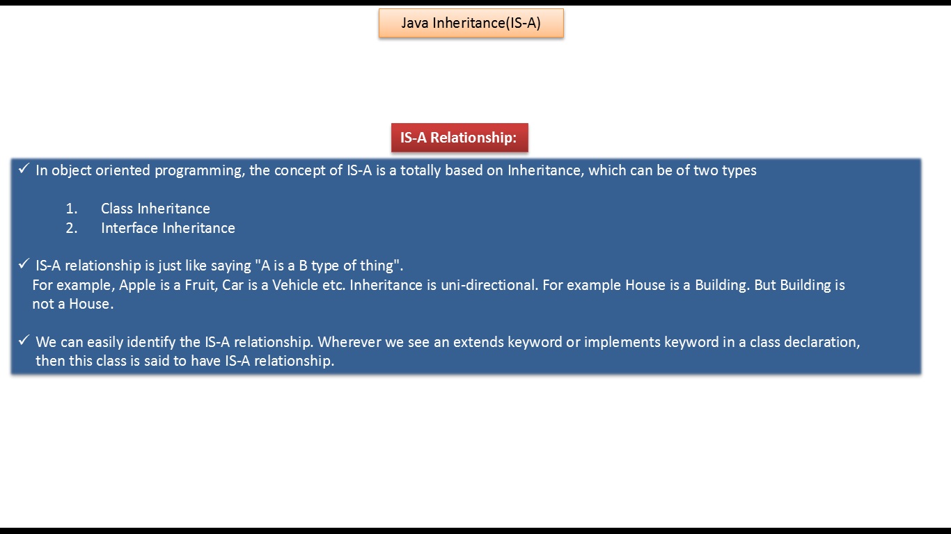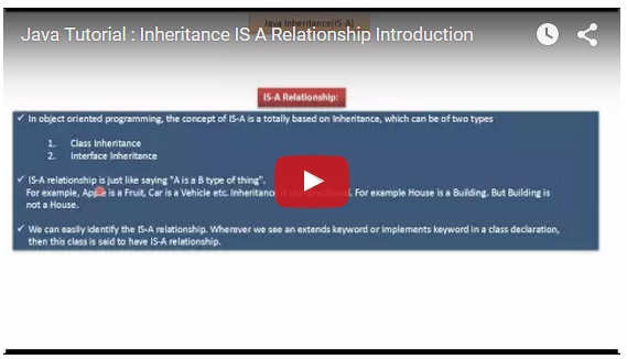 Java Tutorial : Inheritance IS A Relationship Introduction 0 replies on 1 page. |
