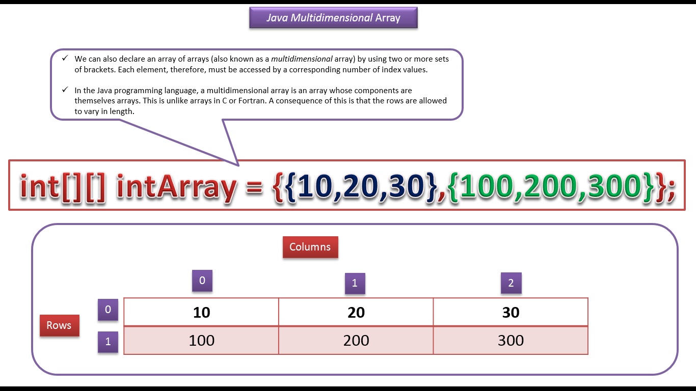 int[][] intArray = {{10,20,30},{100,200,300}};