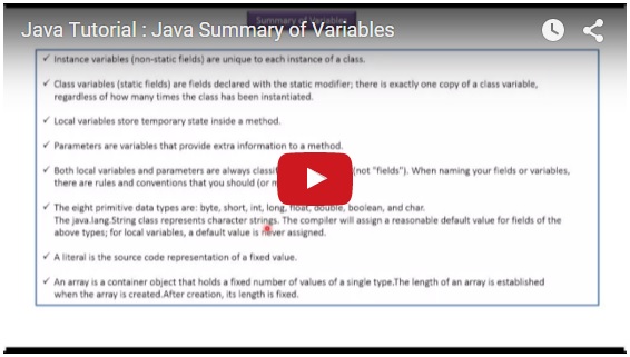 Java Tutorial : Java Summary of Variables 0 replies on 1 page. |