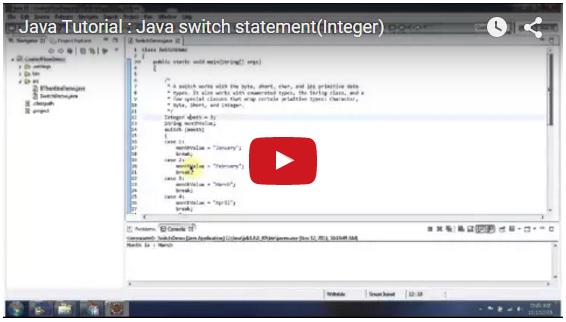 Click here to watch in Youtube : https://www.youtube.com/watch?v=4CdviQPhCtE&list=UUhwKlOVR041tngjerWxVccwSwitchDemo.java class SwitchDemo