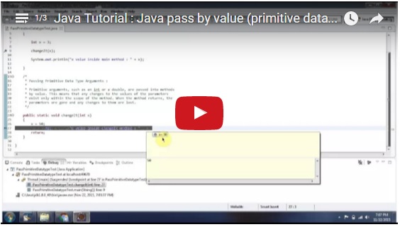 Java Tutorial : Java pass by reference or pass by value - Playlist 0 replies on 1 page. |