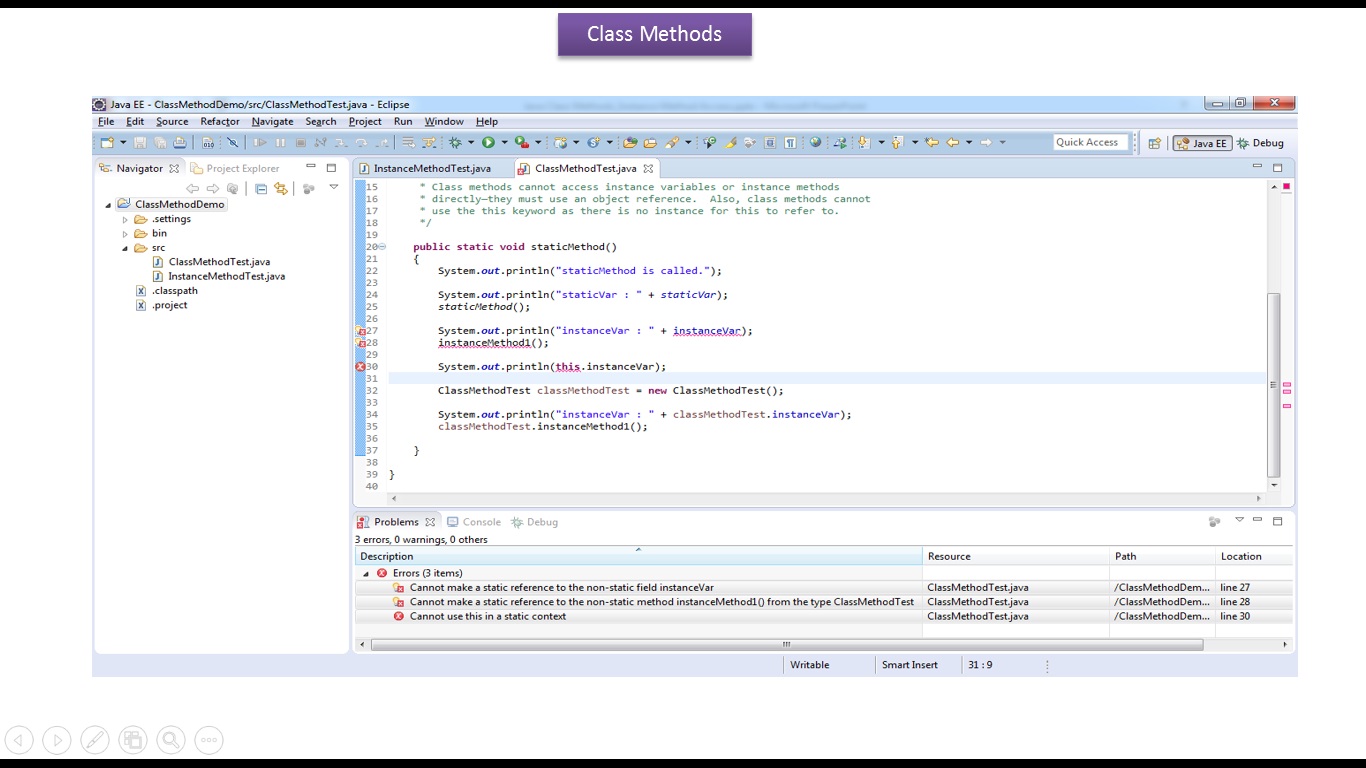 System.out.println("instanceVar : " + classMethodTest.instanceVar);