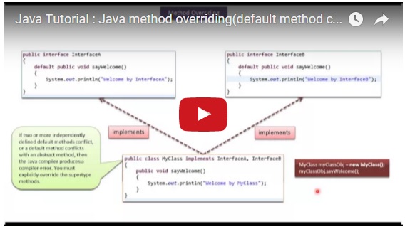 Java Tutorial : Java method overriding(default method conflict) 0 replies on 1 page. |