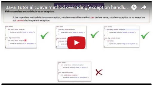 Java Tutorial : Java method overriding(exception handling-Part2) 0 replies on 1 page. |