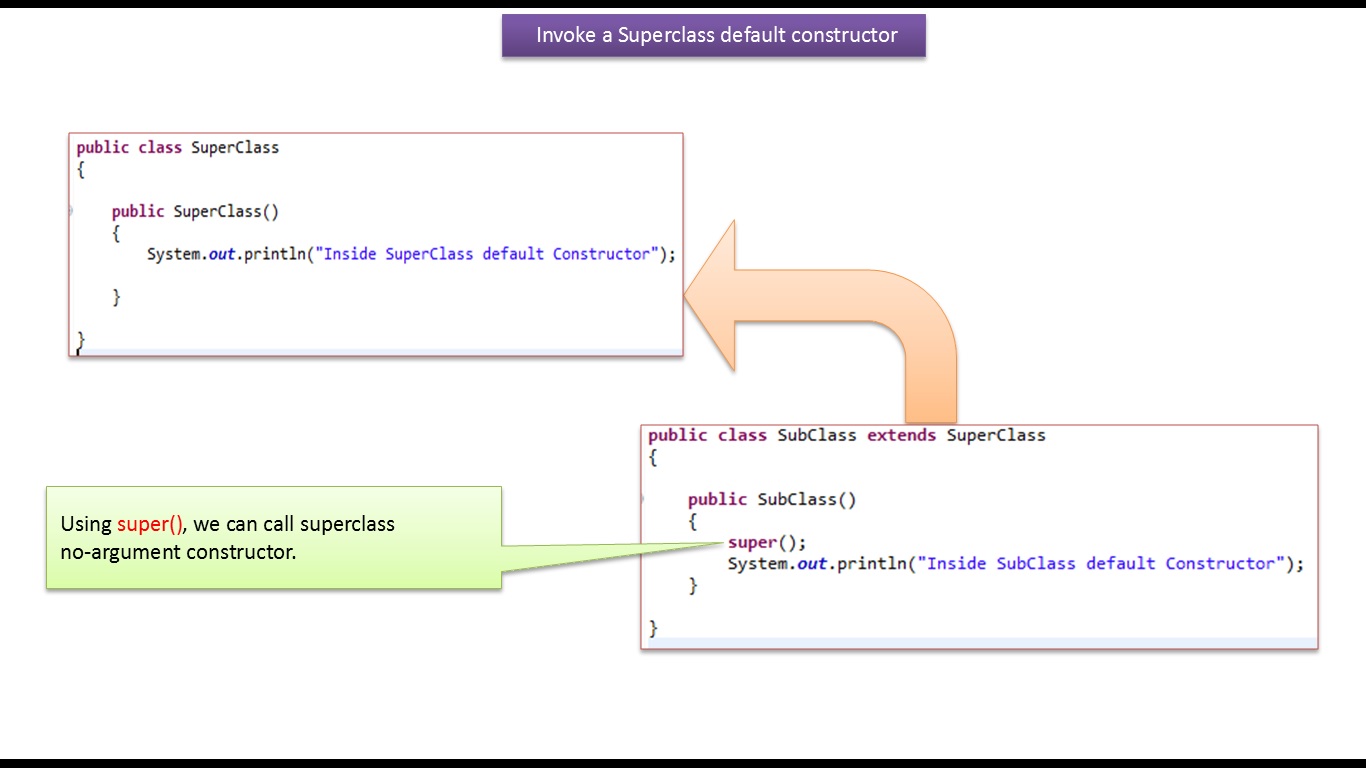 Java Tutorial : Java super keyword (Invoke super class default constructor) 0 replies on 1 page. |