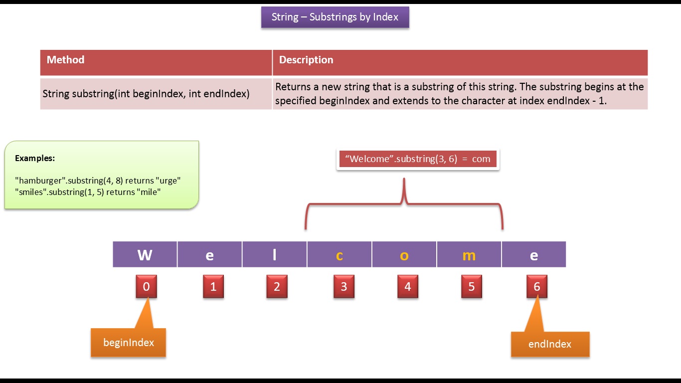 * public String substring(int beginIndex, int