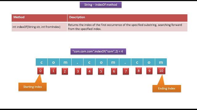 System.out.println("indexOf(\"com\",2) = " + indexPosition);