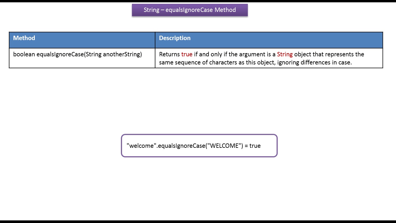 Java Tutorial : Java String [equalsIgnoreCase(String anotherString) method] 0 replies on 1 page. |
