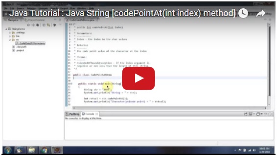 Java Tutorial : Java String [codePointAt(int index) method] 0 replies on 1 page. |