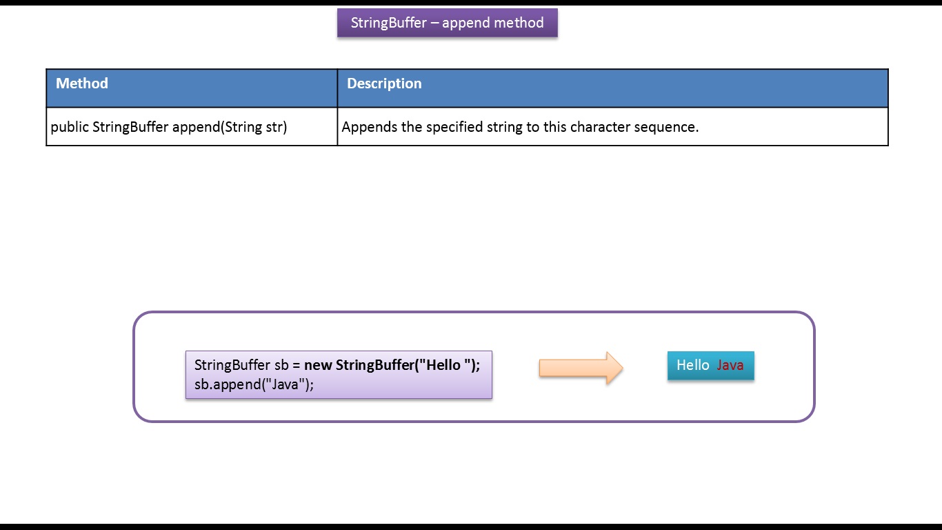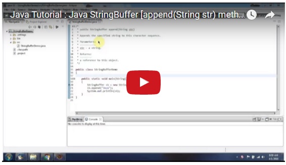 Java Tutorial : Java StringBuffer [append(String str) method] 0 replies on 1 page. |