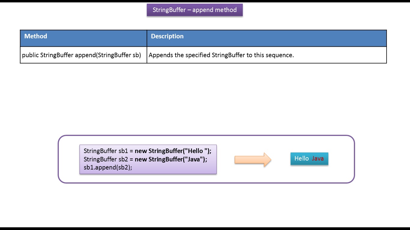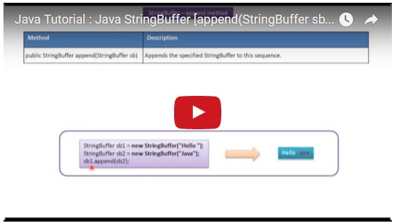 Java Tutorial : Java StringBuffer [append(StringBuffer sb) method] 0 replies on 1 page. |