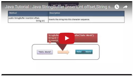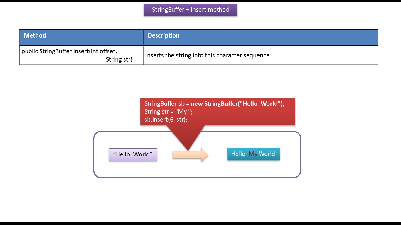 Java Tutorial : Java StringBuffer [insert(int offset,String str) method] 0 replies on 1 page. |