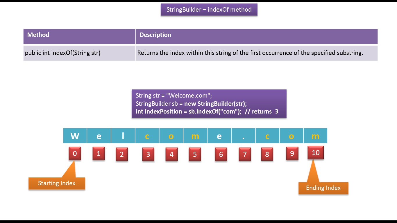 System.out.println("indexOf(\"com\") = " + indexPosition);