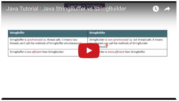 Java Tutorial : Java StringBuffer vs StringBuilder 0 replies on 1 page. |