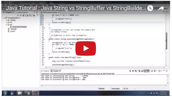Click here to watch in Youtube : https://www.youtube.com/watch?v=IWRh7OVJPbA&list=UUhwKlOVR041tngjerWxVccwPerformanceTest.java public class PerformanceTest