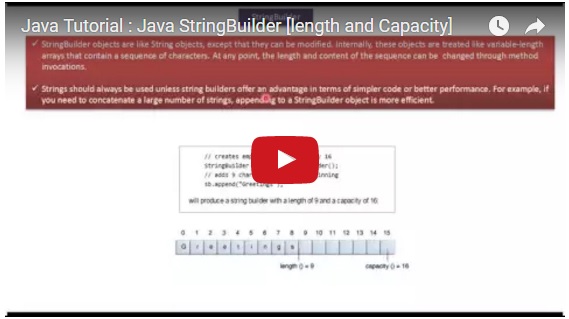 Java Tutorial : Java StringBuilder [length and Capacity] 0 replies on 1 page. |