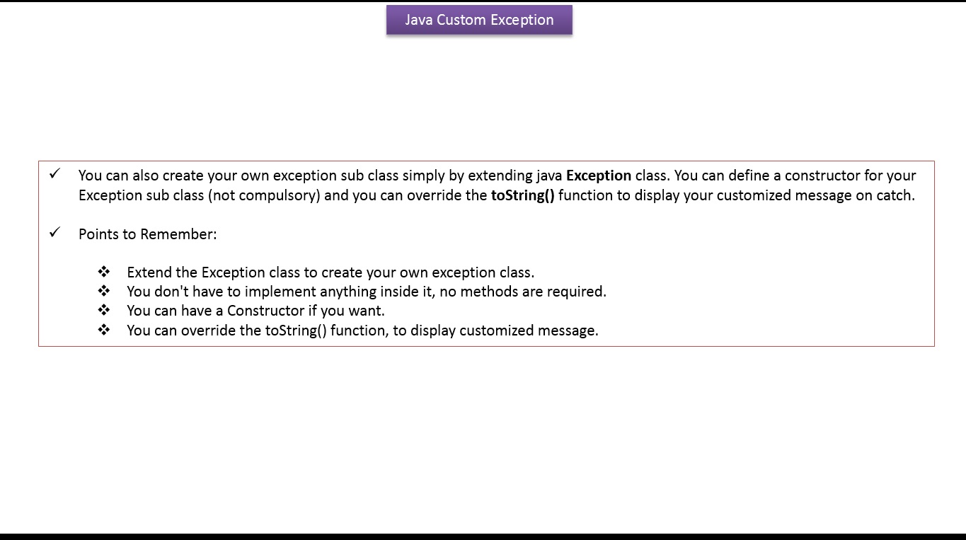 at CustomExceptionDemo.main(CustomExceptionDemo.java:9)