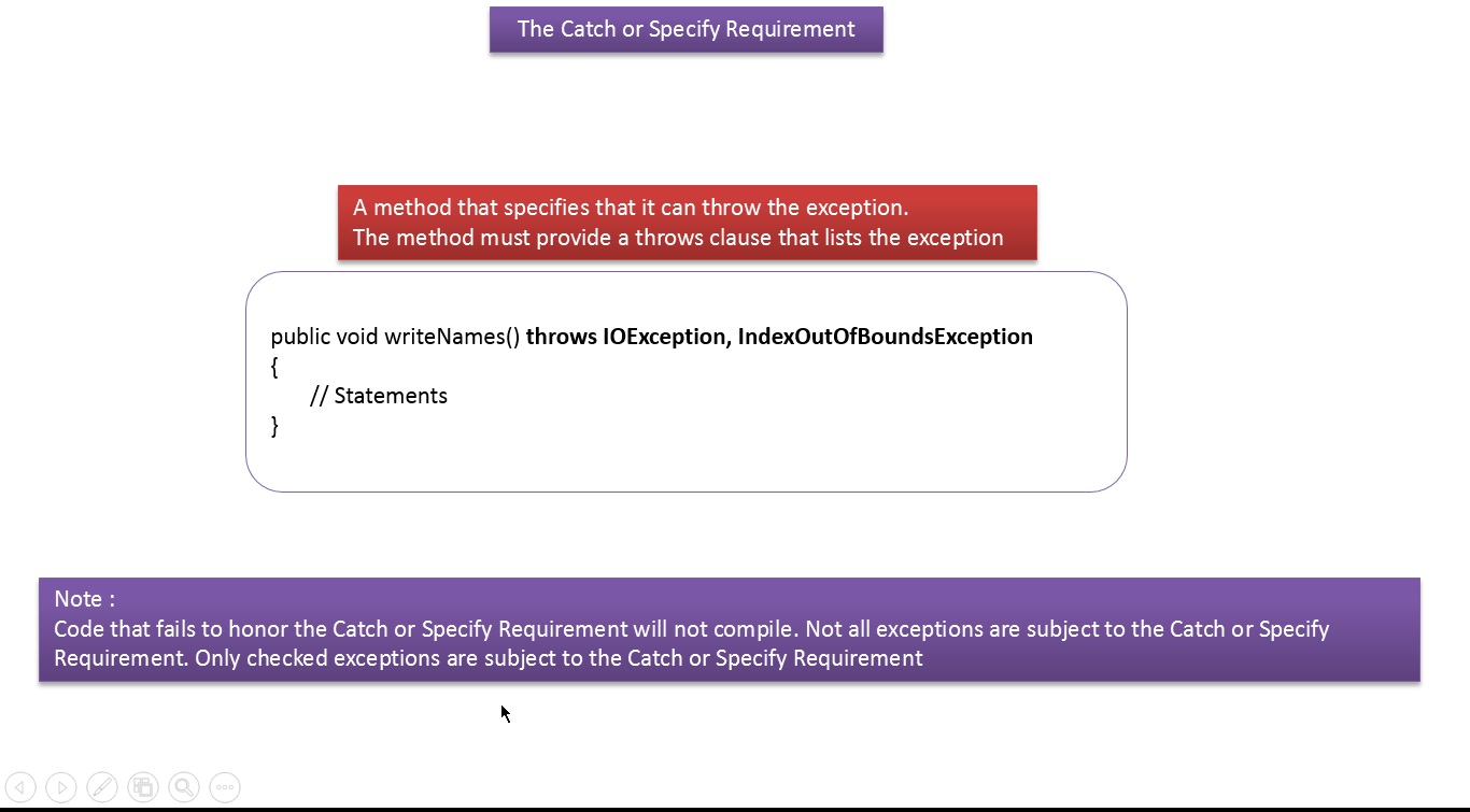 Java Tutorial : Java Exception handling (The catch or specify requirement) 0 replies on 1 page. |