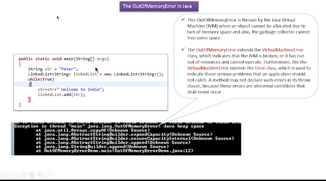 OutOfMemoryErrorDemo.java import java.util.LinkedList;