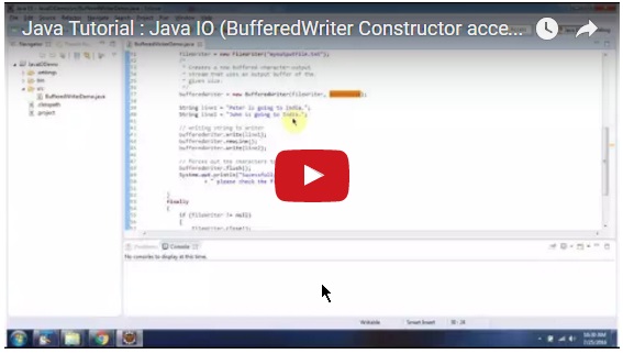 Click here to watch in Youtube :https://www.youtube.com/watch?v=qNfd1OrrMMg&list=UUhwKlOVR041tngjerWxVccwBufferedWriterDemo.java import java.io.BufferedWriter;