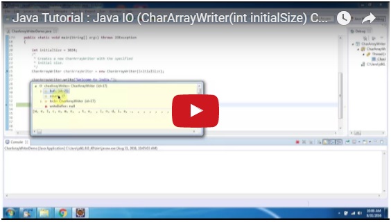 Java Tutorial : Java IO (CharArrayWriter(int initialSize) Constructor) 0 replies on 1 page. |