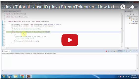 Click here to watch in Youtube : https://www.youtube.com/watch?v=oL7fVykCUYA&list=UUhwKlOVR041tngjerWxVccwStreamTokenizerDemo.javaimport java.io.IOException;