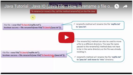 boolean success = file.renameTo(new File("D:/work/misc/java.txt"));