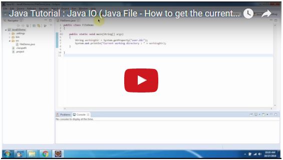 Java Tutorial : Java IO (Java File - How to get the current working directory) 0 replies on 1 page. |