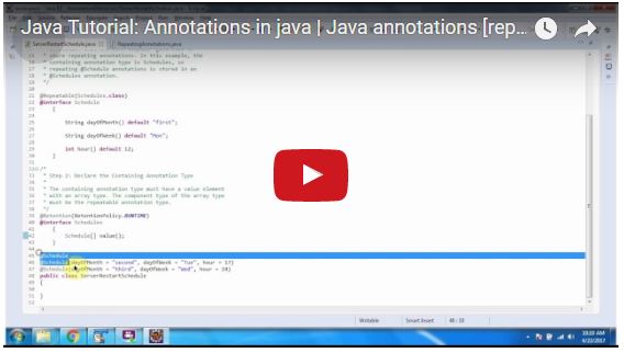 Click here to watch in Youtube : https://www.youtube.com/watch?v=t9cNw4-xi0c&list=UUhwKlOVR041tngjerWxVccwServerRestartSchedule.javaimport java.lang.annotation.Repeatable;